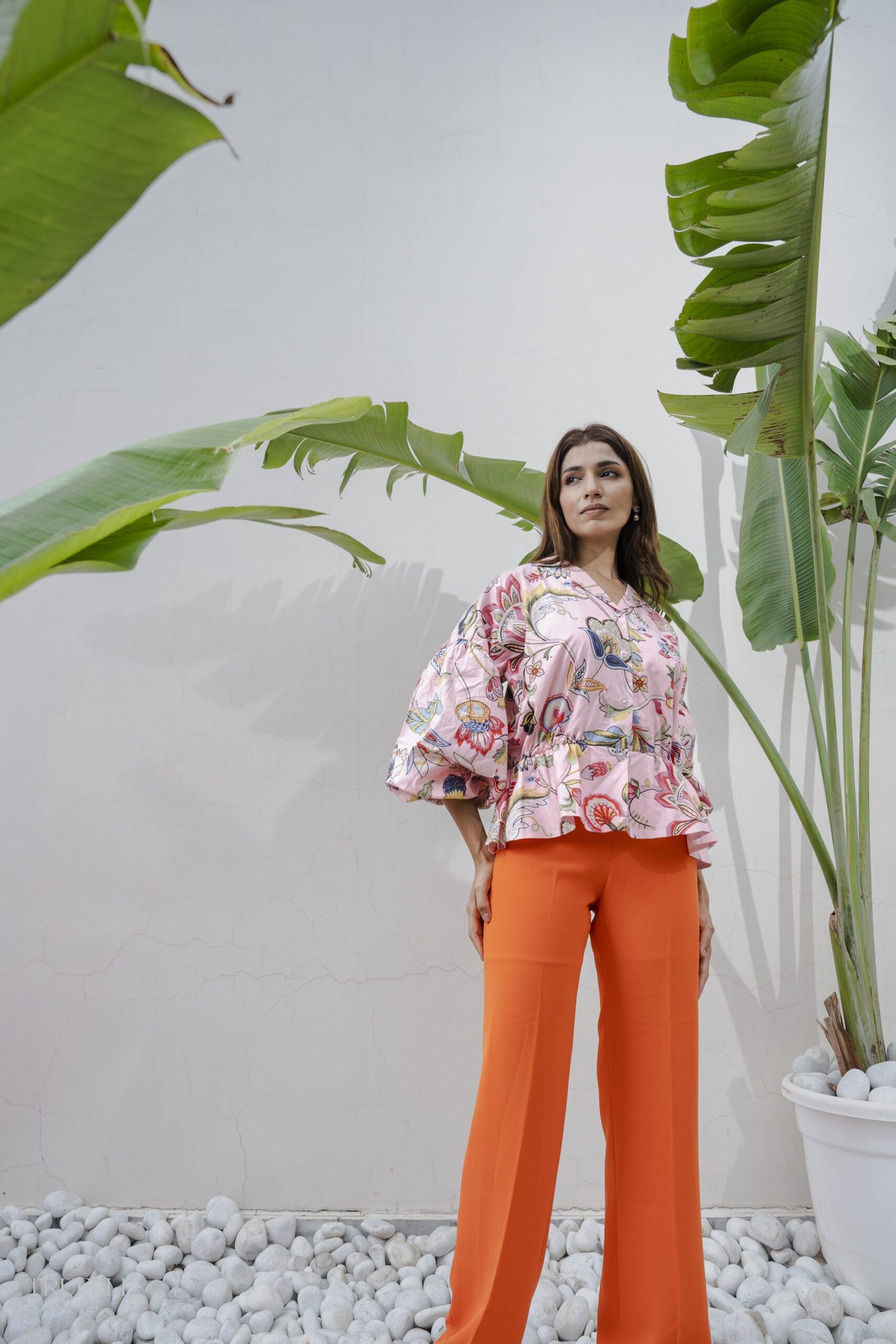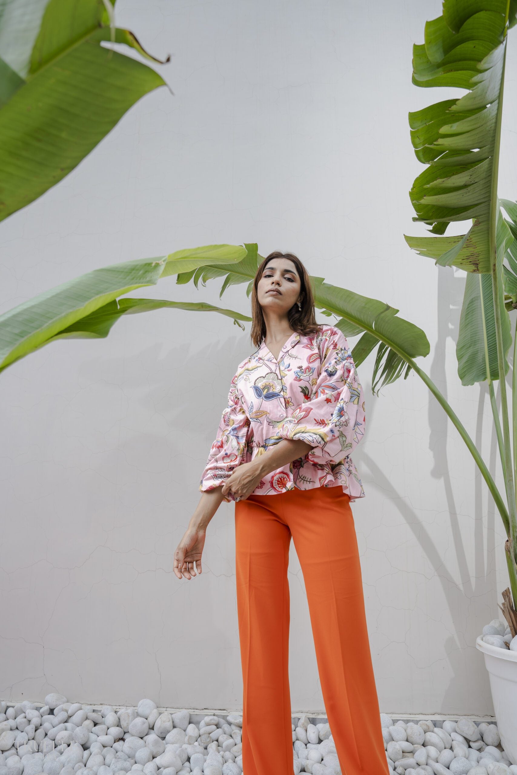 This flower print pink Top is a delightful choice for a summery day. The dress features a collar that adds a touch of elegance and charm. With a waist-clinging design, it beautifully accentuates the baby bump while providing comfort and support. The vibrant flower print adds a cheerful and feminine touch, making it a perfect choice for a sunny day out. Embrace your pregnancy glow in this lovely top, combining fashion and functionality flawlessly.