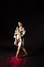 This Blazer dress is a truly one of a kind standout! Its classic cut combined with a uniquely bold and modern print—a white, grey, and black abstract geometric pattern—taps into both edgy and sophisticate vibes. Feel like a professional yet fashion-forward star.