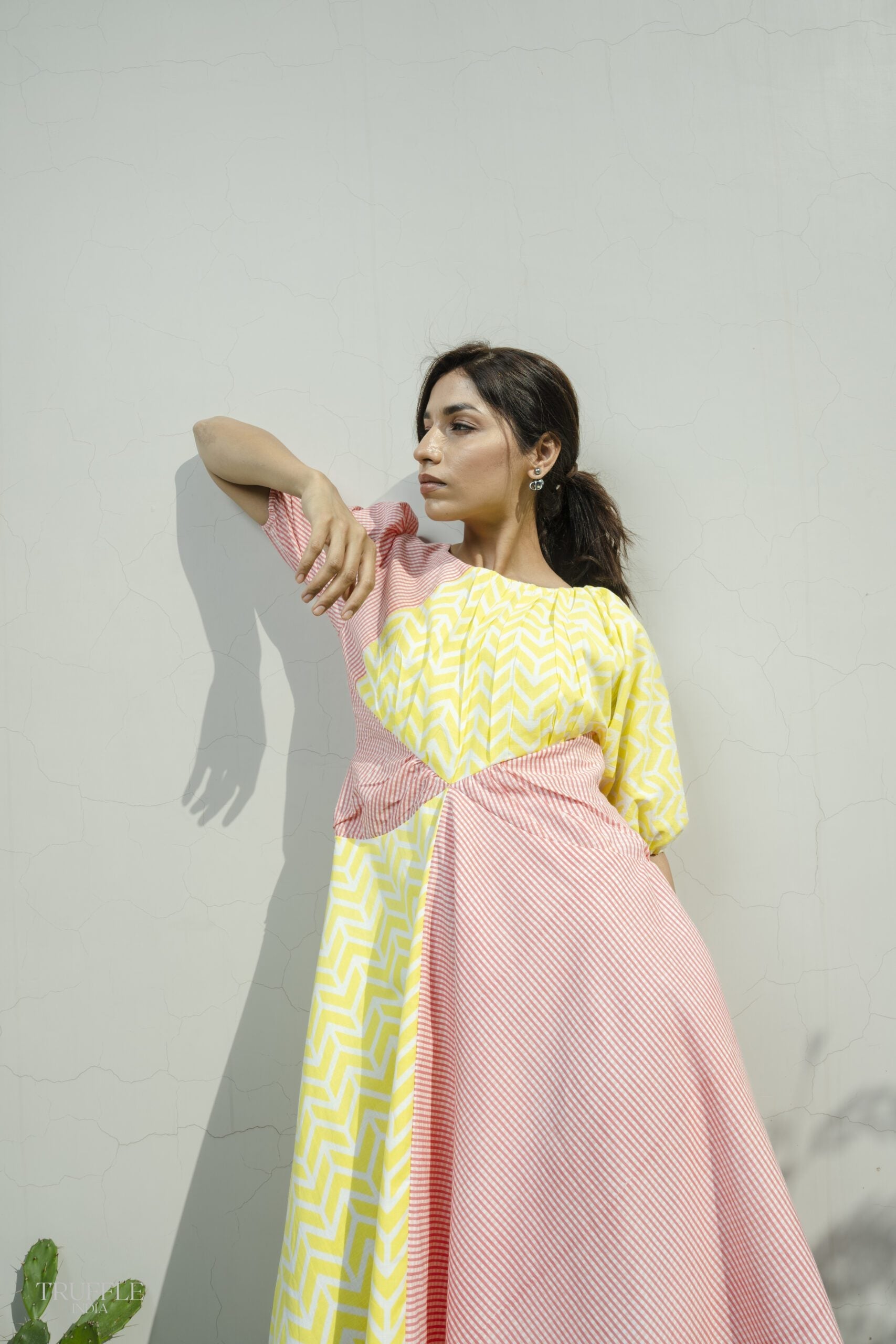 Get ready to flaunt your BUMP with us .Whether you're attending a garden party, strolling along the beach, or simply enjoying a picnic in the park, this geometric dress with color blocks is your go-to choice. It effortlessly combines fashion-forward design with practicality, allowing you to look and feel your best as you celebrate the joyous journey of pregnancy. Embrace the summer vibes, showcase your baby bump with confidence, and let this dress become your sunny day companion.