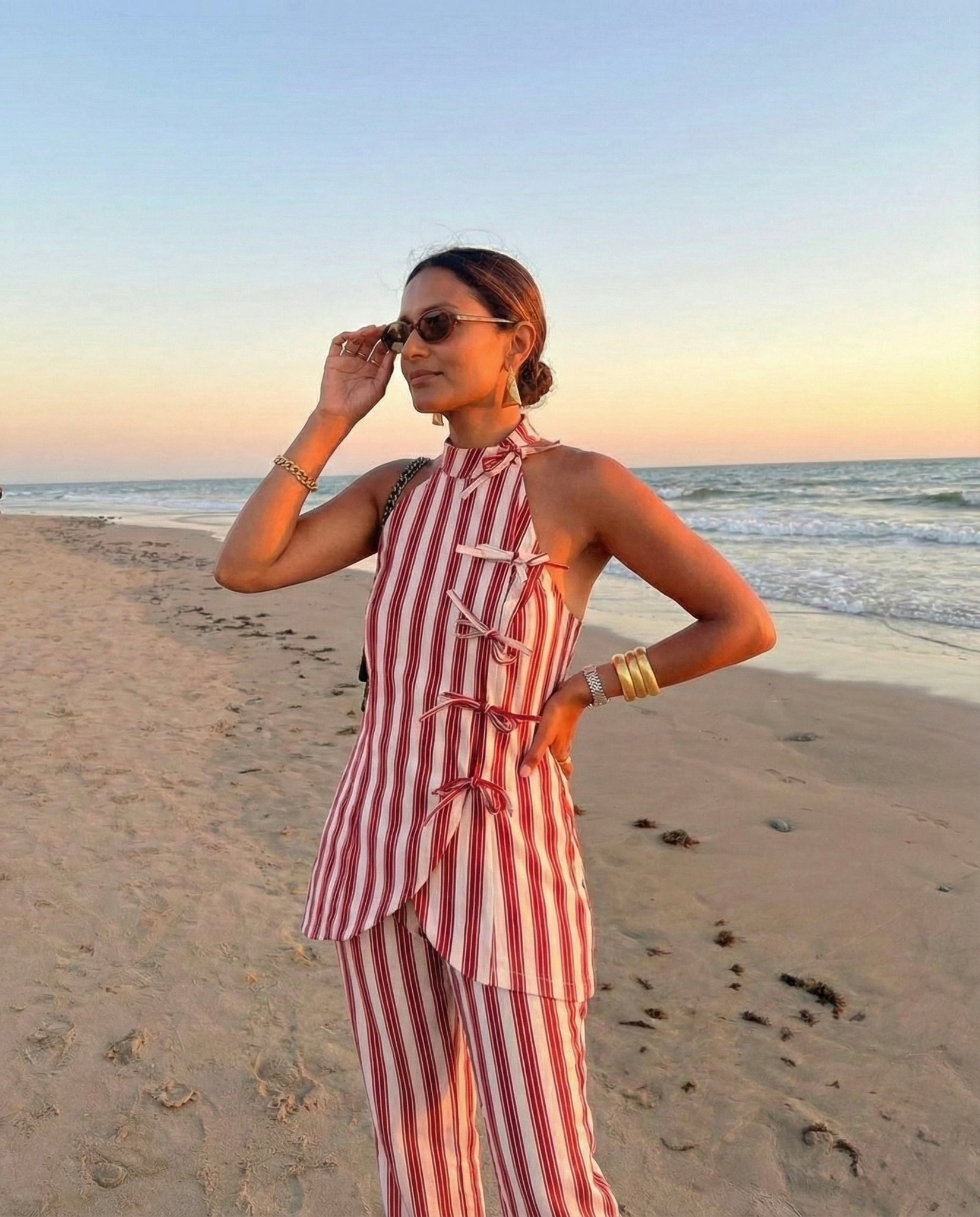 Make a statement in our all-season Co-ord. Crafted from light and airy fabric with a vibrant stripe print , you'll feel calm and relaxed while looking sharp. Vacay in style and show the world what you stand for.