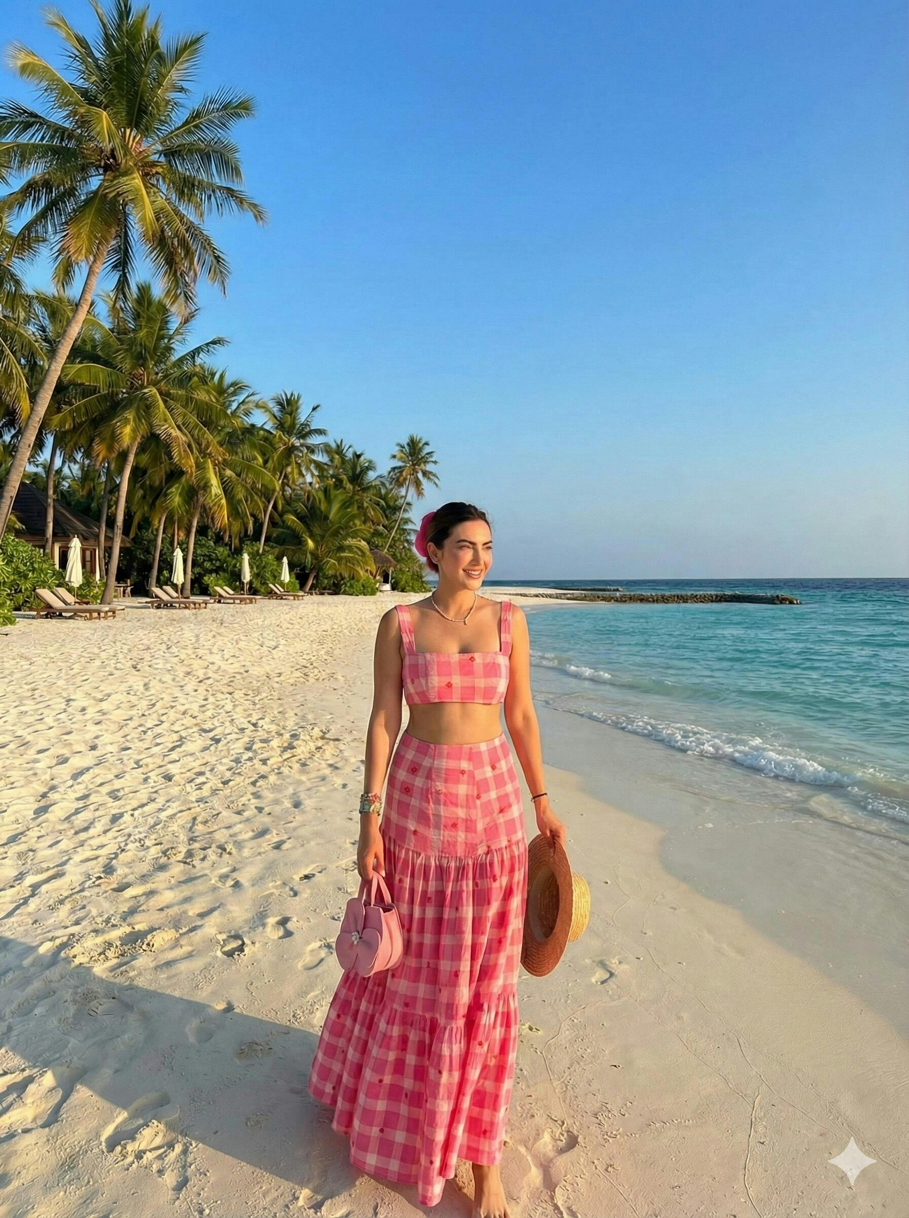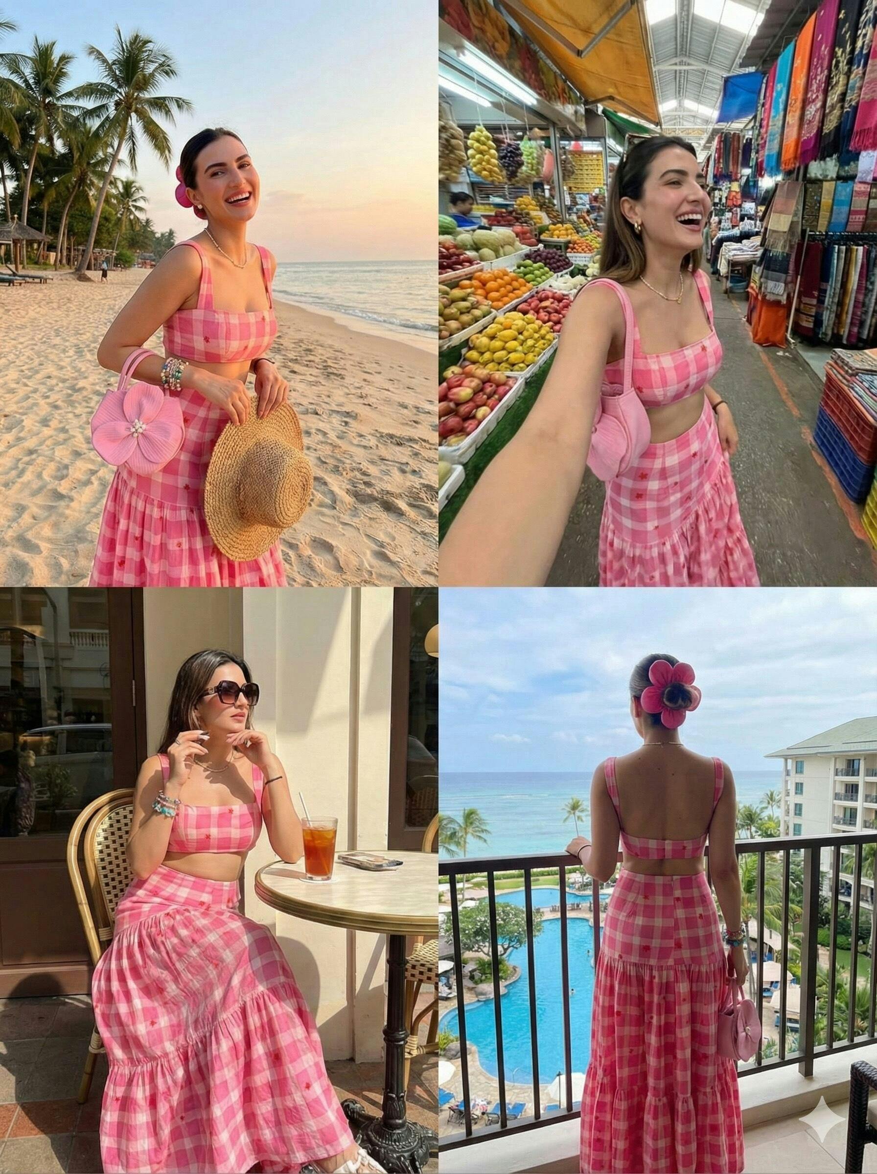 Wrap up in Gingham starry print CO-ORD for instant vacay vibes. This stylish two-piece set features a chic skirt and top with a bold feather print. Get ready to relax and feel effortless style in every moment!