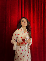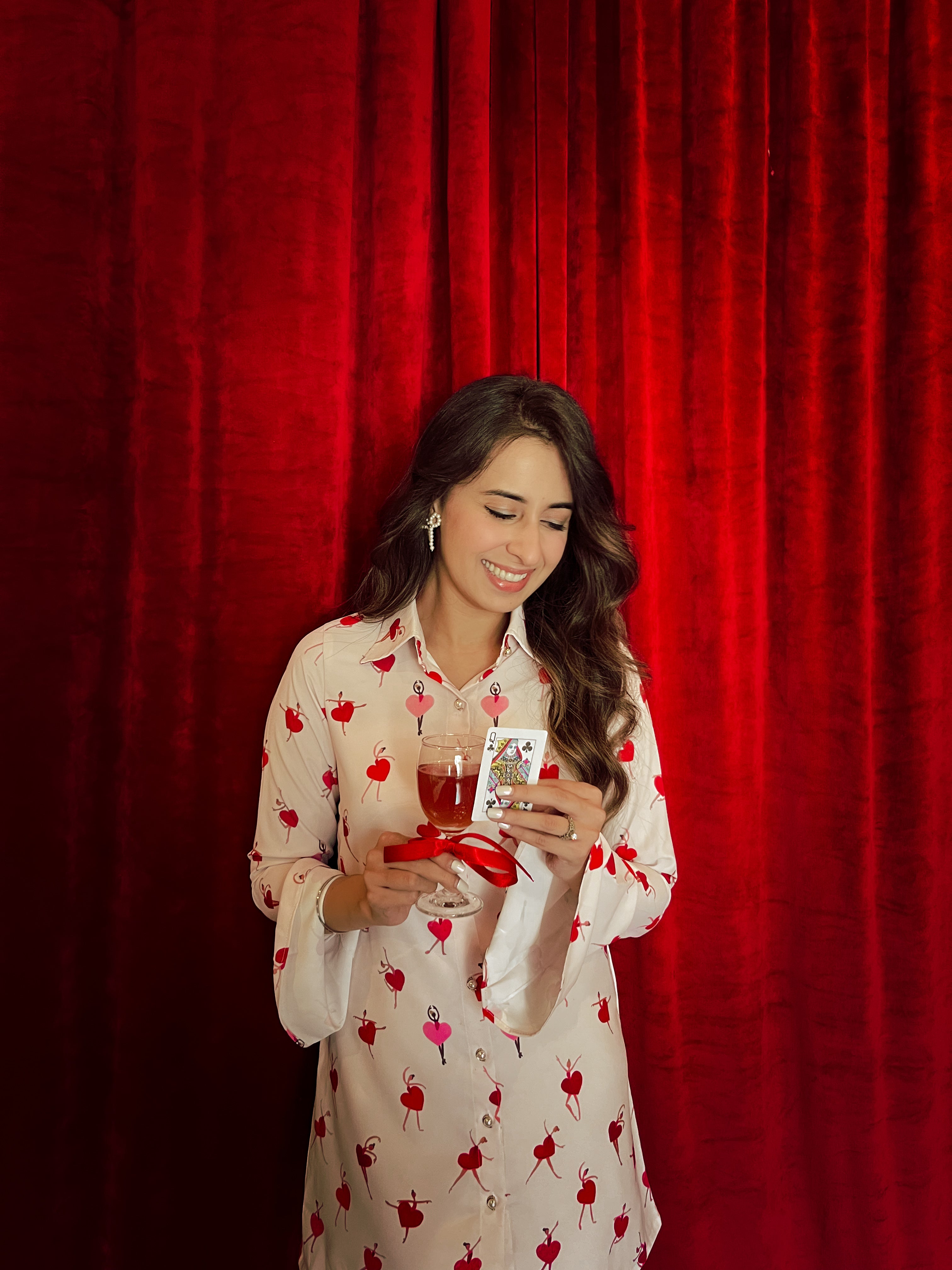 Get ready to dance the night away in this CINDRELLA DRESS! Made with luxurious Japanese silk, this dress is perfect for a Diwali party. With a heart-shaped design and delicate pearl button detailing, you'll feel like royalty in this unique and stunning dress. (Just be careful not to lose your glass slipper!)